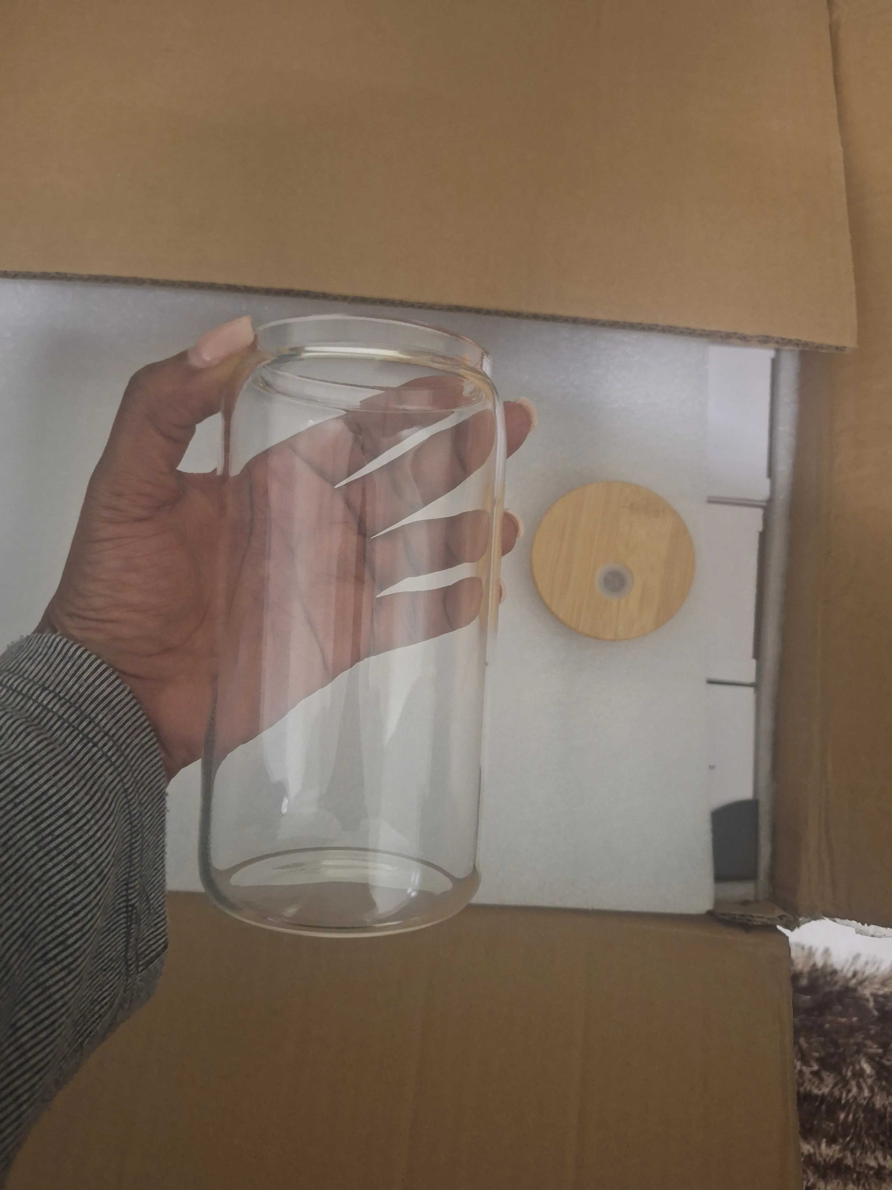 20Oz Vs Magazijn Dubbelwandige Glas Tumbler Met Bamboe Deksel En Stro Voor Sublimatie Printproces Voor Diy Sneeuwbol